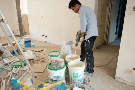 廠家在廠內(nèi)就已經(jīng)把各種粉質(zhì)類和起粘接物質(zhì)(乳膠粉)及一些起施工特性的物質(zhì)混合好,做成干粉質(zhì)的產(chǎn)品,施工的時候直接加水?dāng)嚢杓纯?,?dāng)然也有一些工人會根據(jù)情況現(xiàn)場在加入一些熟膠粉,纖維素或膠水等。