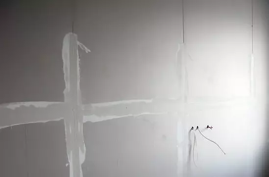 對線槽或新建墻等部位進(jìn)行貼紙,貼布,掛網(wǎng)等方式處理,對接縫部位刮嵌縫石膏。